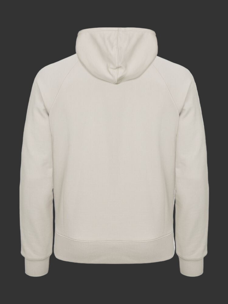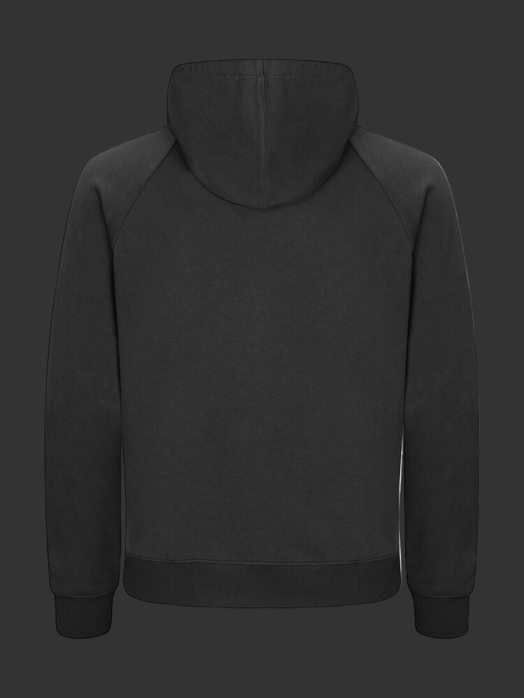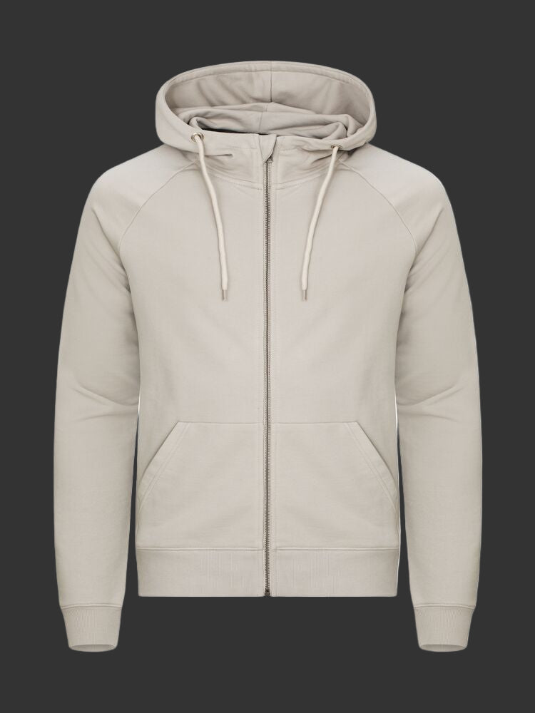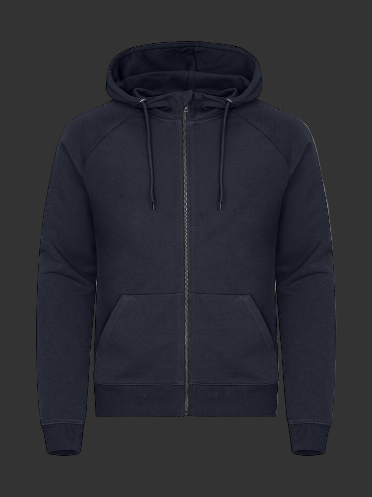 En unisex hettejakke i French Terry kvalitet, med en blanding av bomull og resirkulert polyester. Hettejakken har raglanermer, kengurulomme og en beskyttende klaff øverst på metallglidelåsen, samt et dobbelt lag for ekstra stabilitet. Maljer og enden på snorene er laget av metall. Den elastiske 2x2 ribben har enkle sømmer i halsen, nederst på ermet og i nederkant. Inkluderer kontrastfarget twillbånd i halsen, en opphengsløkke og en etikett som er enkel å ta av for rebranding. Hettejakken har mykt, stabilisert stoff med anti-pilling finish, godt egnet for intensiv vask.