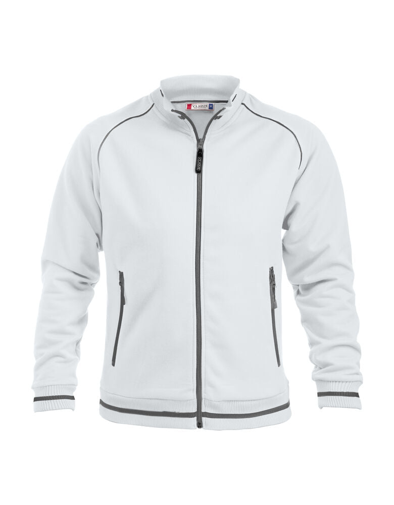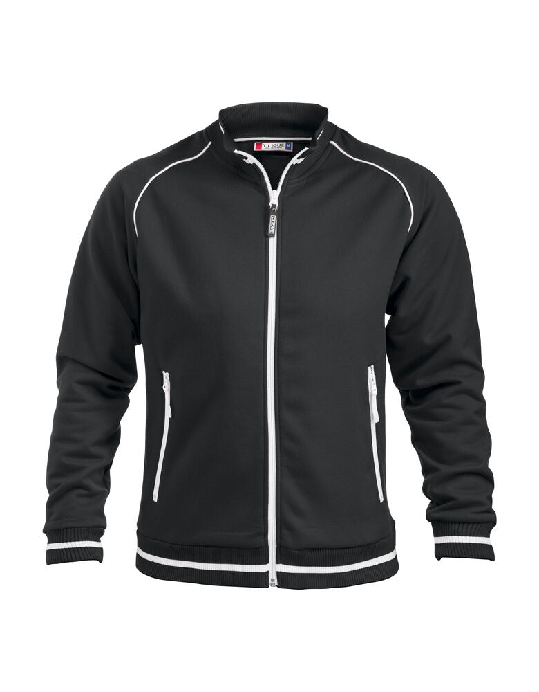 Unisex jakke i strikket struktur med børstet innside. Kontrast stripe i krage, i nedre del og i mansjetter. To lommer i front med kontrast på glidelås.