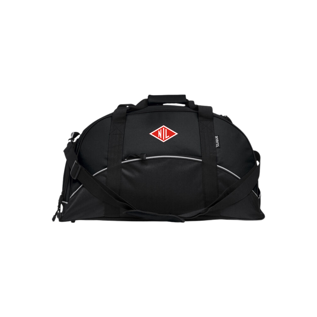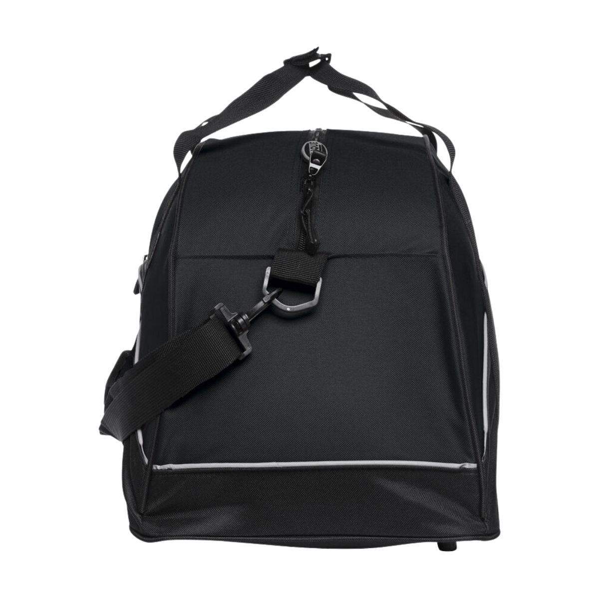 Sporty bag med siderom på kortsiden til sko. Ytterlomme med glidelås, refleksbånd og svart bunn. To bæreremmer og avtagbar skulderrem. Volum: Cirka 41 L.