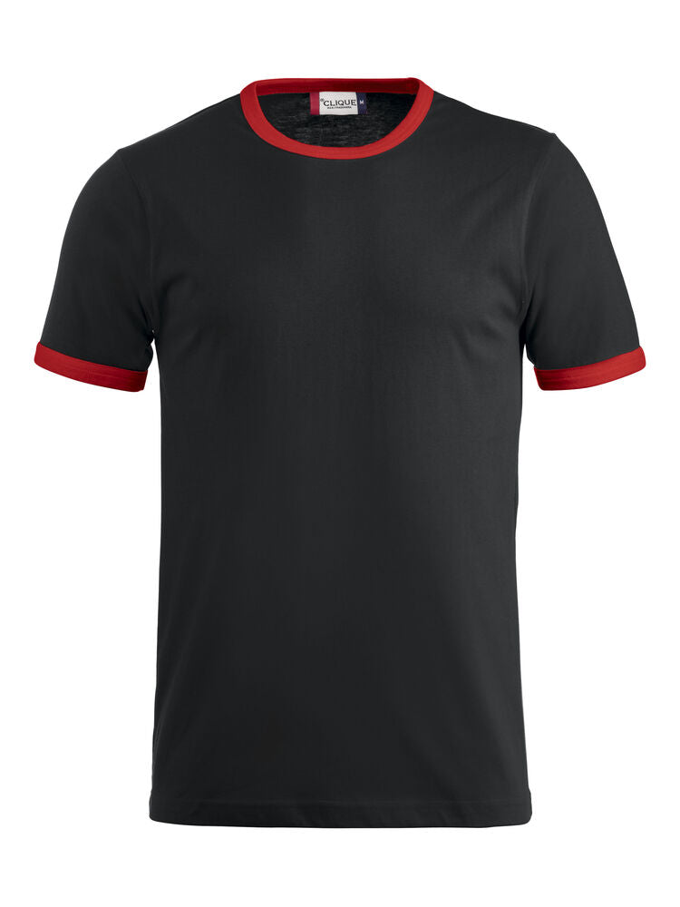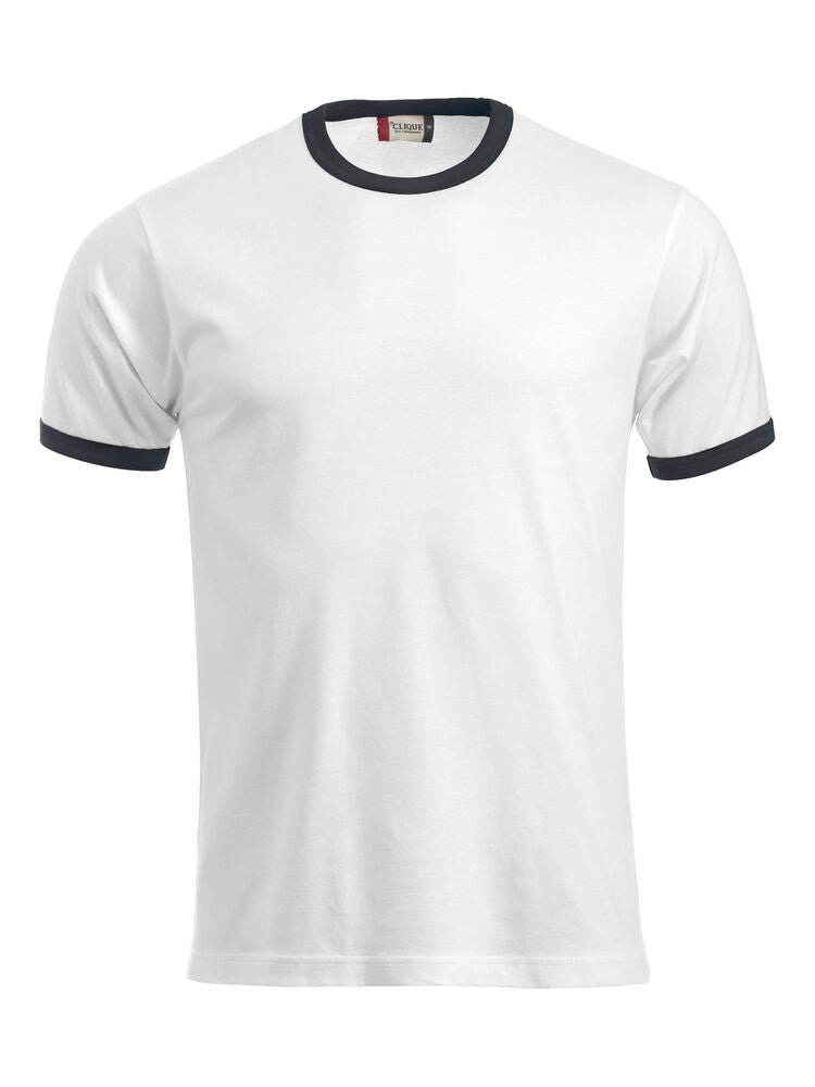 Moderne T-shirt med noe smalere passform, kontrastfarge i hals og ermer. Teipet krage med elastan.