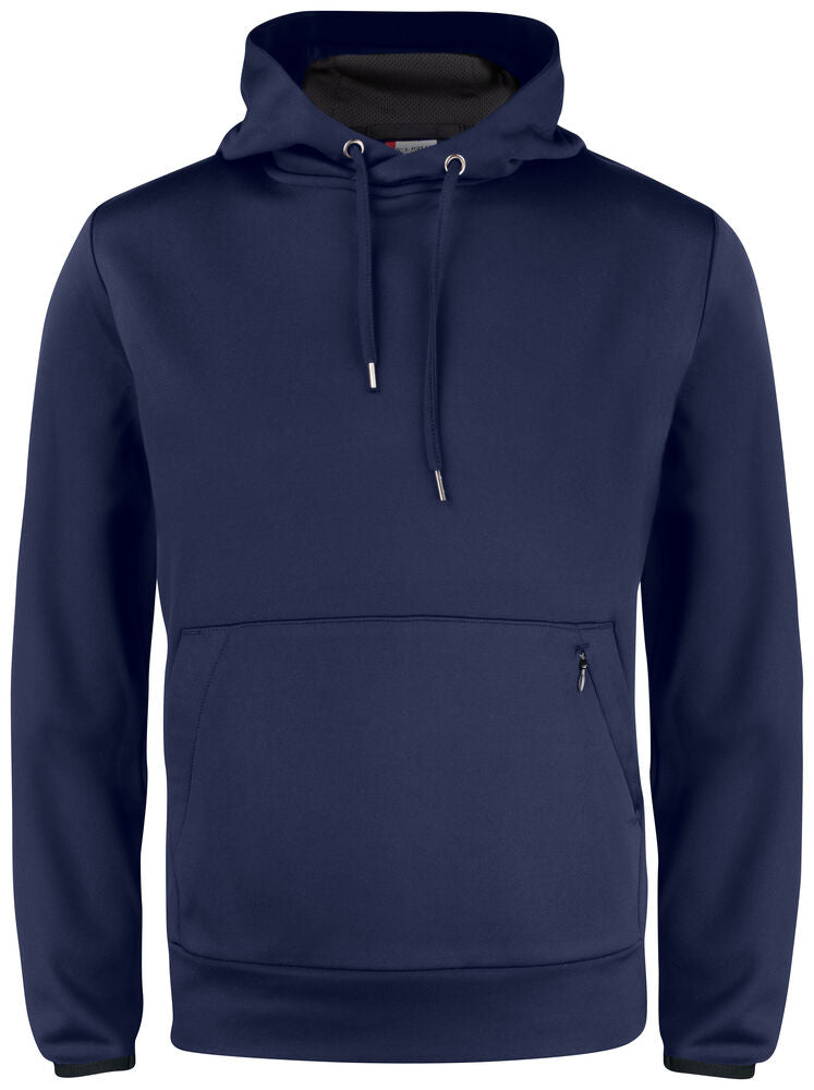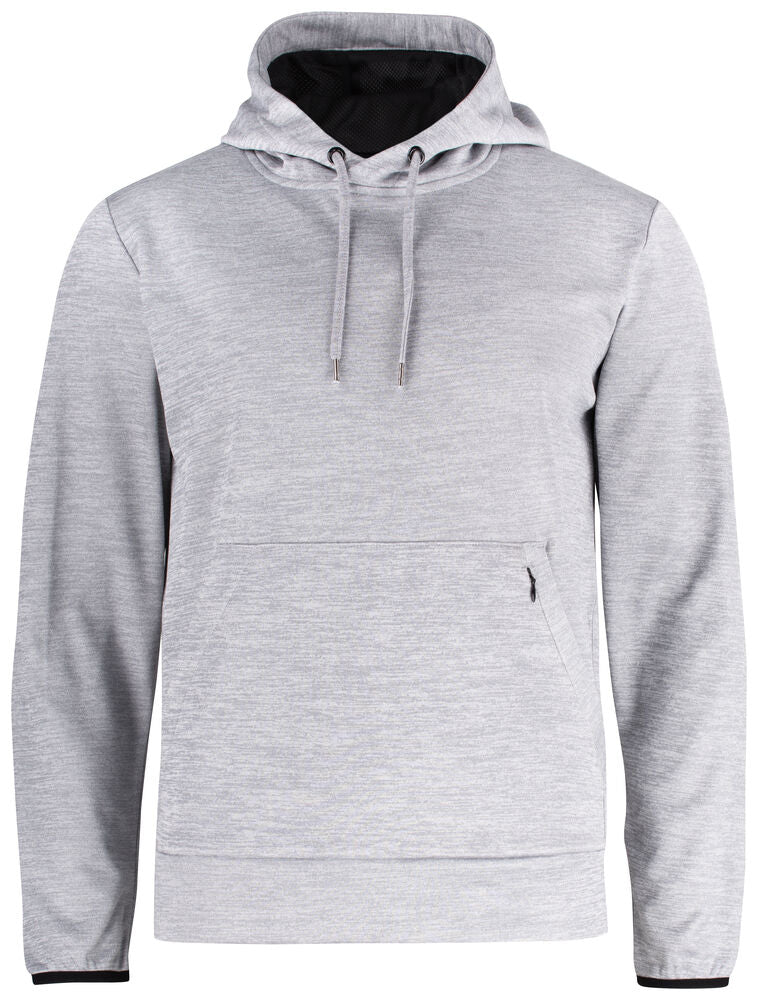 Funksjonell og sporty hettegenser. Leveres med en kengurulomme og en ekstra skjult lomme med glidelås. Hette har meshfôr og snøring. Elastisk strikk i ermekant. Mansjett i stoffet nederst.