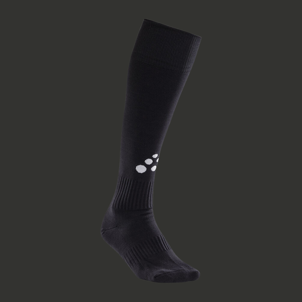 Match og treningstrømper med strategisk plasserte paneler som holder leggskinnene på plass. Funksjonelt materiale gir god passform og holder føttene tørre under instens aktivitet. Klassisk ensfarget design.